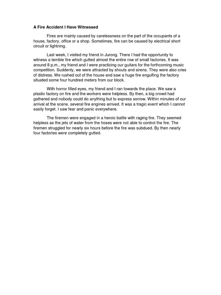 A personal essay is a short work of autobiographical nonfiction characterized by a sense of intimacy and a conversational manner. An accident i saw essay: Cause this terrible accident happened to me. The incident was so horrible that, sometimes do wonder why had to be witness to it. Drinking is the main reason of a number of accidents on the roads. It was a cold and foggy day.